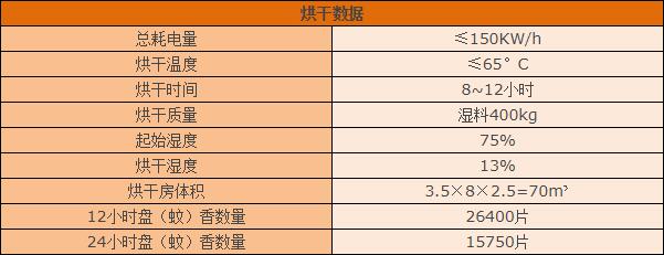 1.采用高温热泵烘干机组,对蚊香进行烘干。烘烤的进程的有程序自动控制。保证蚊香品质的稳定性。